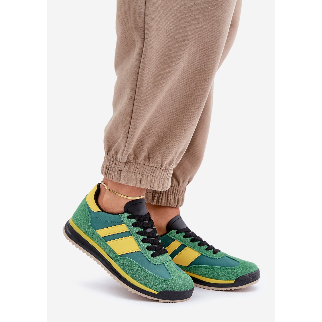 Esses tênis verdes com detalhes em amarelo e uma sola de borracha bege são uma ótima opção para todas as mulheres que apreciam o estilo e o conforto modernos. Extremamente leve e prático, eles funcionarão em todas as situações.