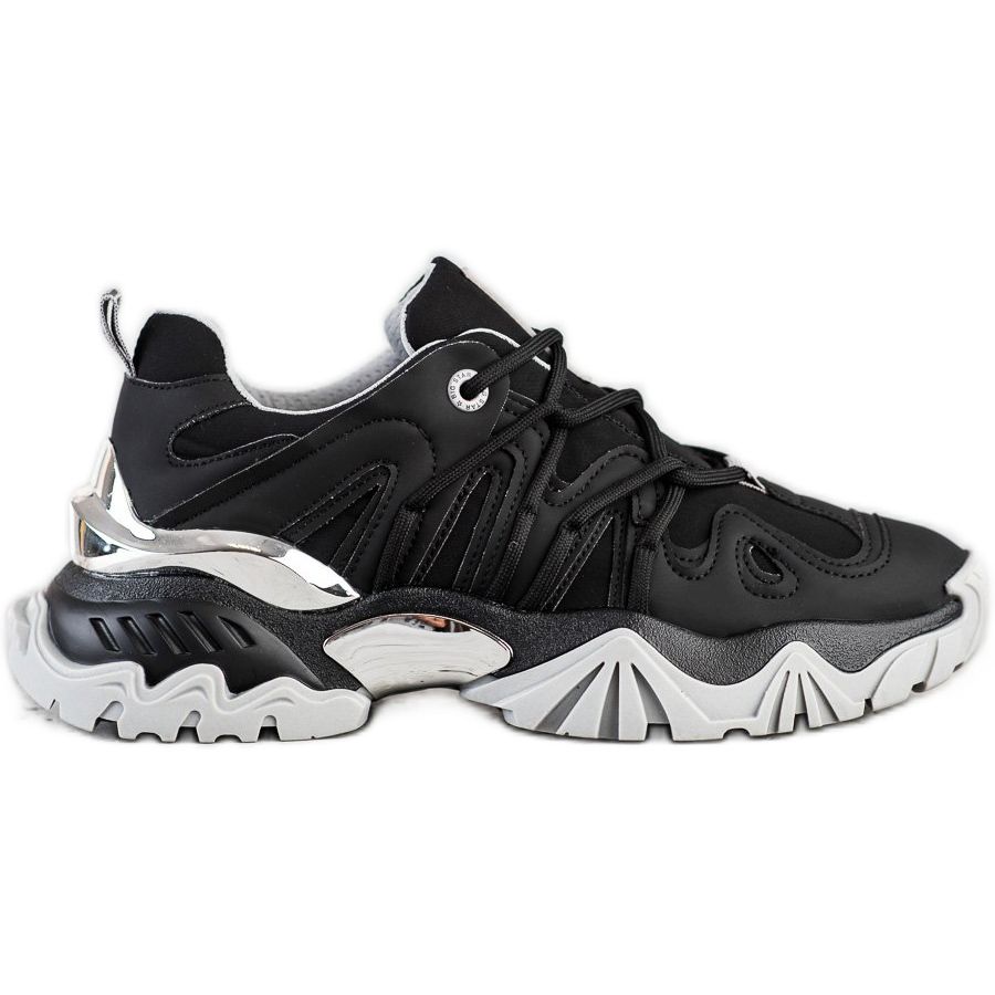 O fabricante, a marca Big Star, garantiu alta qualidade de acabamento. A parte superior do calçado é confeccionada em 50% couro sintético e 50% material têxtil, o que garante durabilidade e conforto de uso. Um calcanhar macio e fechado e uma biqueira redonda podem ajudá-lo a obter o máximo conforto. A sola de borracha com banda de rodagem garante uma boa aderência em qualquer superfície e a altura da plataforma de 3,5 cm confere uma elegância sutil.