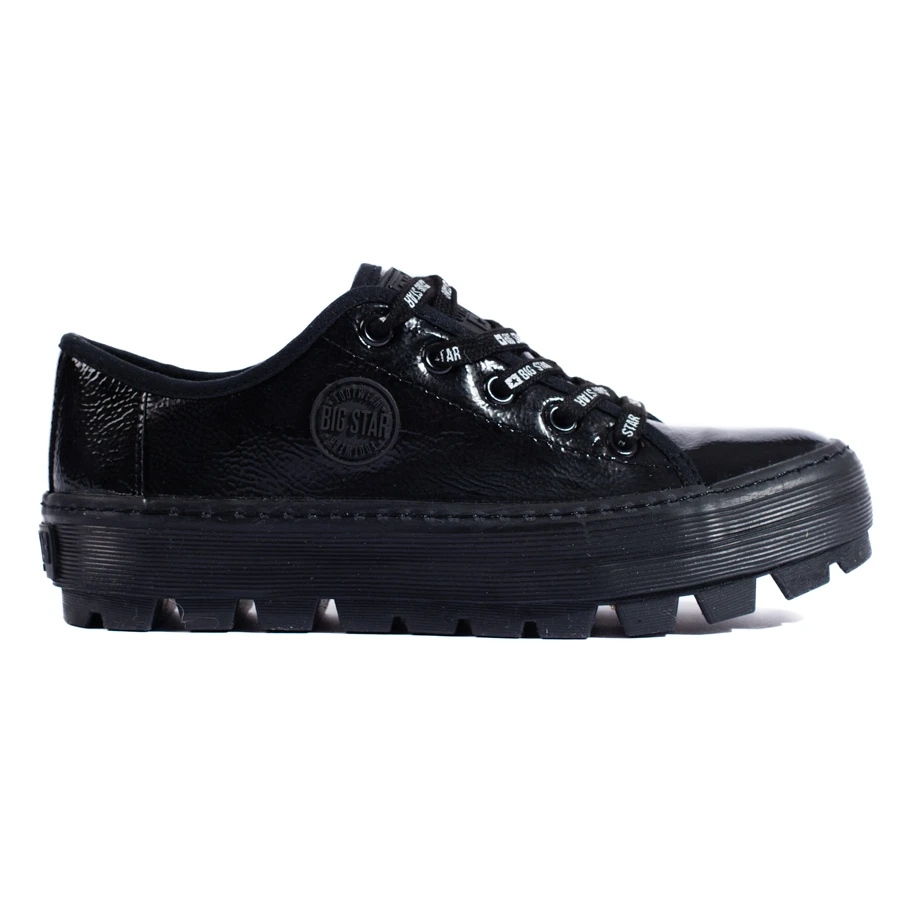 Uma proposta leve e elegante da Big Star - tênis KK274044 feita de couro ecológico lacado em preto. É uma combinação de um personagem esportivo com um estilo urbano - perfeito para estilizações diárias para a primavera e o verão.