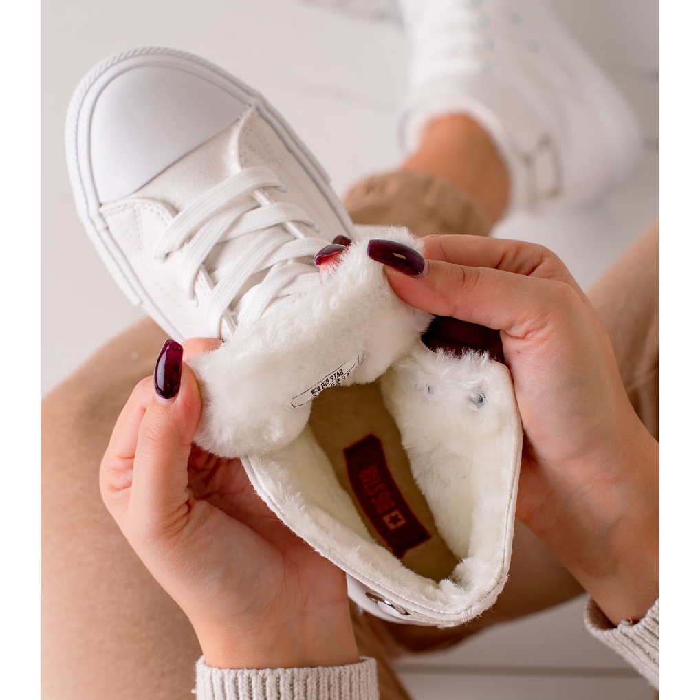 O tênis feminino Big Star V274541 na cor branca é a proposta ideal para mulheres que valorizam conforto, estilo e design moderno. Confeccionados com materiais de alta qualidade, esses tênis de cano alto possuem cabedal em imitação de couro, o que garante não só um visual elegante, mas também de fácil manutenção. Um salto macio e embutido torna-os confortáveis de usar durante todo o dia, e o isolamento de pele os torna perfeitos não apenas para a primavera e o verão, mas também para os dias de outono.