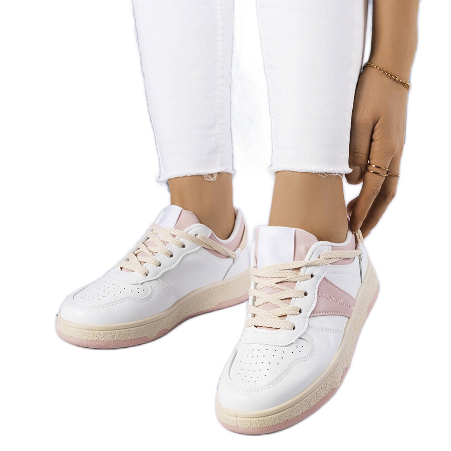 Os tênis modernos inspirados na moda dos anos 90, combinando branco clássico com inserções rosa doces. O modelo é distinguido por um nariz redondo e perfurado, um piso colorido e cadarços em um tom tonificado em detalhes. Perfeito para estilizações casuais - elas trabalharão todos os dias, para passear ou encontrar com amigos.