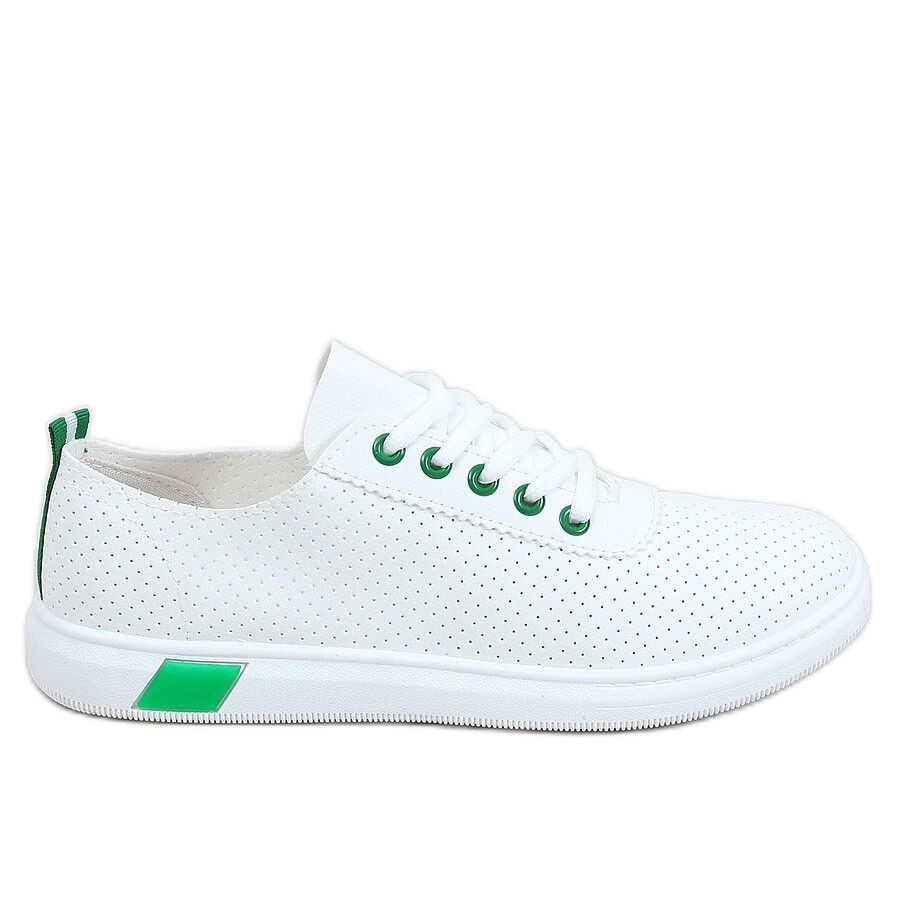Estes são os ténis femininos LA42 Green brancos e verdes, que devem tornar-se um elemento indispensável no seu guarda-roupa! Estes sapatos com atacadores distinguem-se pelo seu design único, em que presilhas contrastantes e inserções elegantes nas costas combinam perfeitamente com a textura perfurada original do couro ecológico. Graças a isso, eles não só têm um visual moderno, mas também “algo” que vai chamar a atenção.