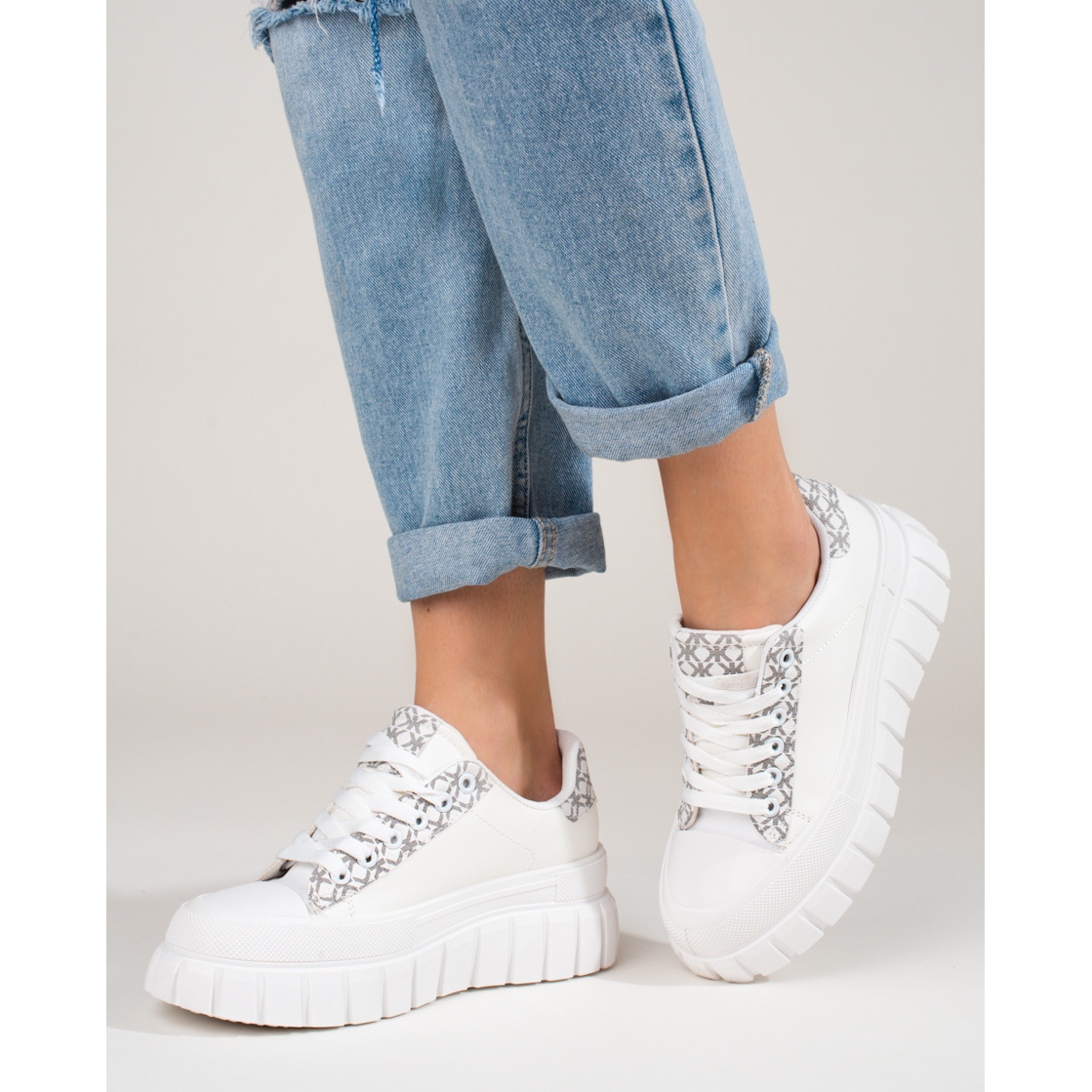 São tênis femininos brancos sobre plataforma grossa da SHELOVET que vão enriquecer com sucesso o seu guarda-roupa. Proporcionam conforto e um visual moderno, perfeitos para o uso diário.