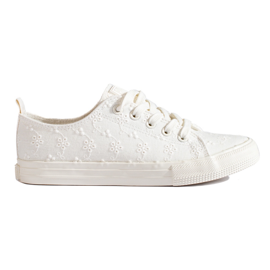 O material externo e interno é confeccionado em tecido 100% têxtil, o que aumenta o conforto de uso e facilita a limpeza do calçado. A clássica cor branca combinada com rendas delicadas é um detalhe interessante e confere aos sapatos um charme feminino. Os designers da Big Star também se certificaram de que os dedos fossem redondos e cheios, e o fecho com cadarço permite que os tênis se ajustem perfeitamente ao pé.
