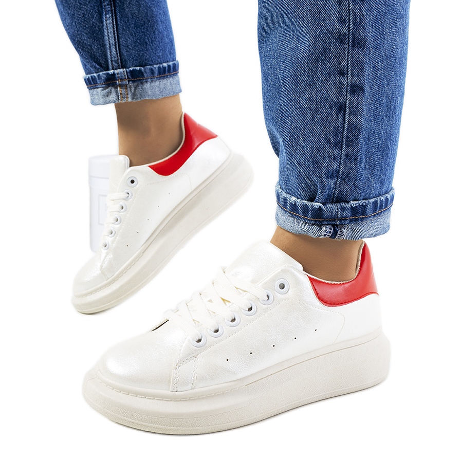 Tênis femininos de pérolas brancas Neera - um estilo esportivo com sotaque vermelho