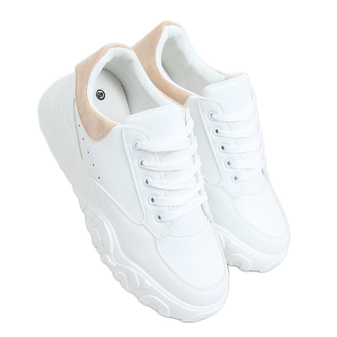 Descubra os extraordinários tênis femininos brancos VL124P Beige - a combinação perfeita de estilo e conforto. Estes ténis de sola alta na clássica cor branca distinguem-se pelos acessórios elegantes e contrastantes que lhes conferem um carácter pessoal. Eles se enquadram perfeitamente nas tendências de estilo urbano, principalmente no estilo glamour, o que os torna uma excelente opção para o uso diário.