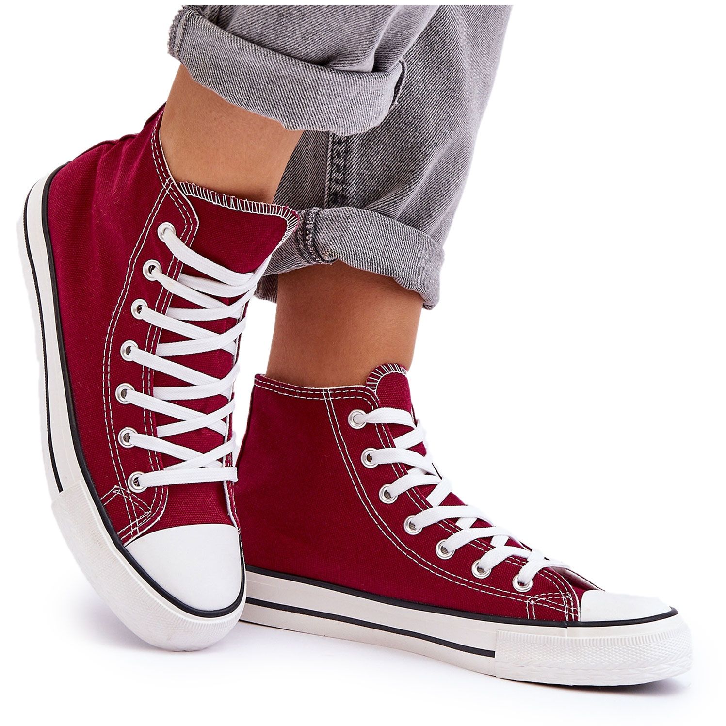Sneakers clássicos de FR1 Women High "Wine" - Borgonha e tênis de tornozelo atemporal, combinando uma forma simples com a conveniência do uso diário. Feito de material têxtil, com um reforço de borracha do nariz e uma sola não -deslizante, funcionará nas estações da primavera/verão/outono.