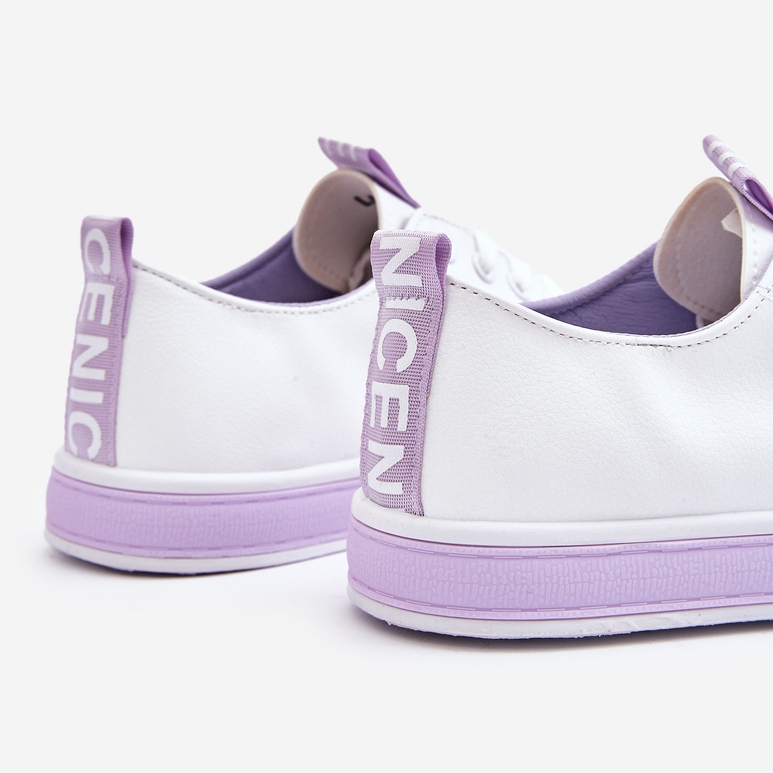 Detalhes: Tênis feminino clássico branco-roxo Ville