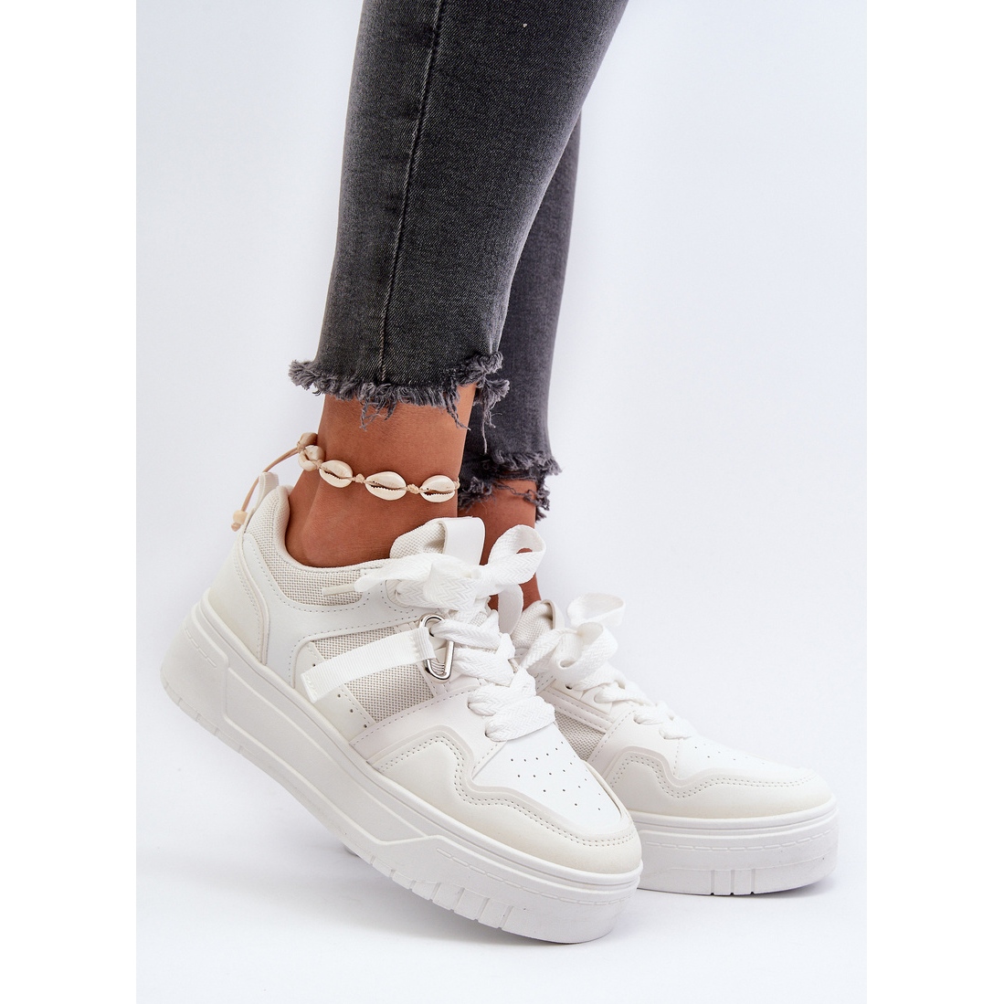 Descubra novos tênis femininos na plataforma com couro ecológico em uma elegante cor branca do fabricante outra marca! A combinação perfeita de estilo e conforto torna esses sapatos uma escolha perfeita para qualquer ocasião. Graças ao corte da moda e à plataforma de 4 cm de alta, você se destaca da multidão, enquanto desfruta da conveniência do uso.