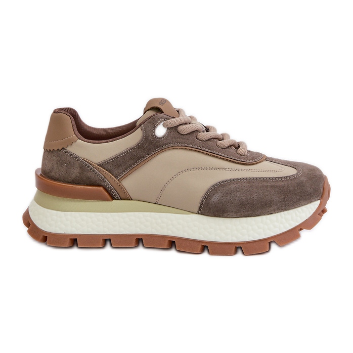 Esses tênis bege, com uma altura da parte superior de 6 cm e uma plataforma de 3,5 cm de altura, serão um complemento perfeito para o esporte e as roupas mais elegantes. O fixador de renda -up permite que você combine os sapatos com o trecho individual do pé, o que garante um conforto ainda maior.