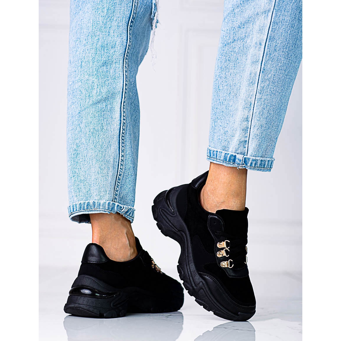 SHELOVET Tênis feminino com sola grossa preta Shelovet preto