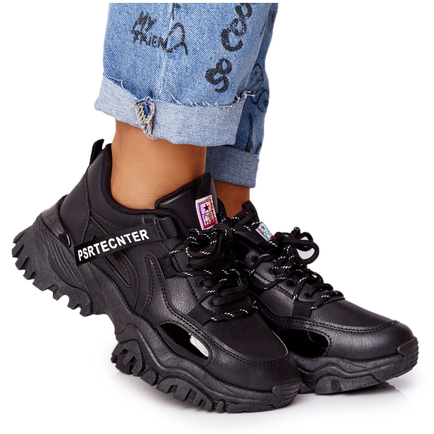 Detalhes: EVE Tênis feminino com sola preta enorme preto