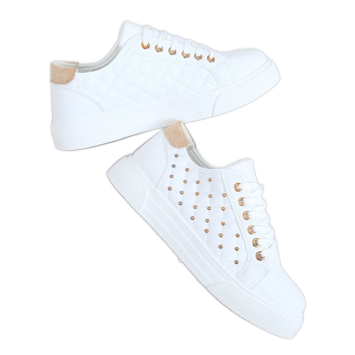 Inna marka Tênis feminino com tachas brancas LA124P Beige branco