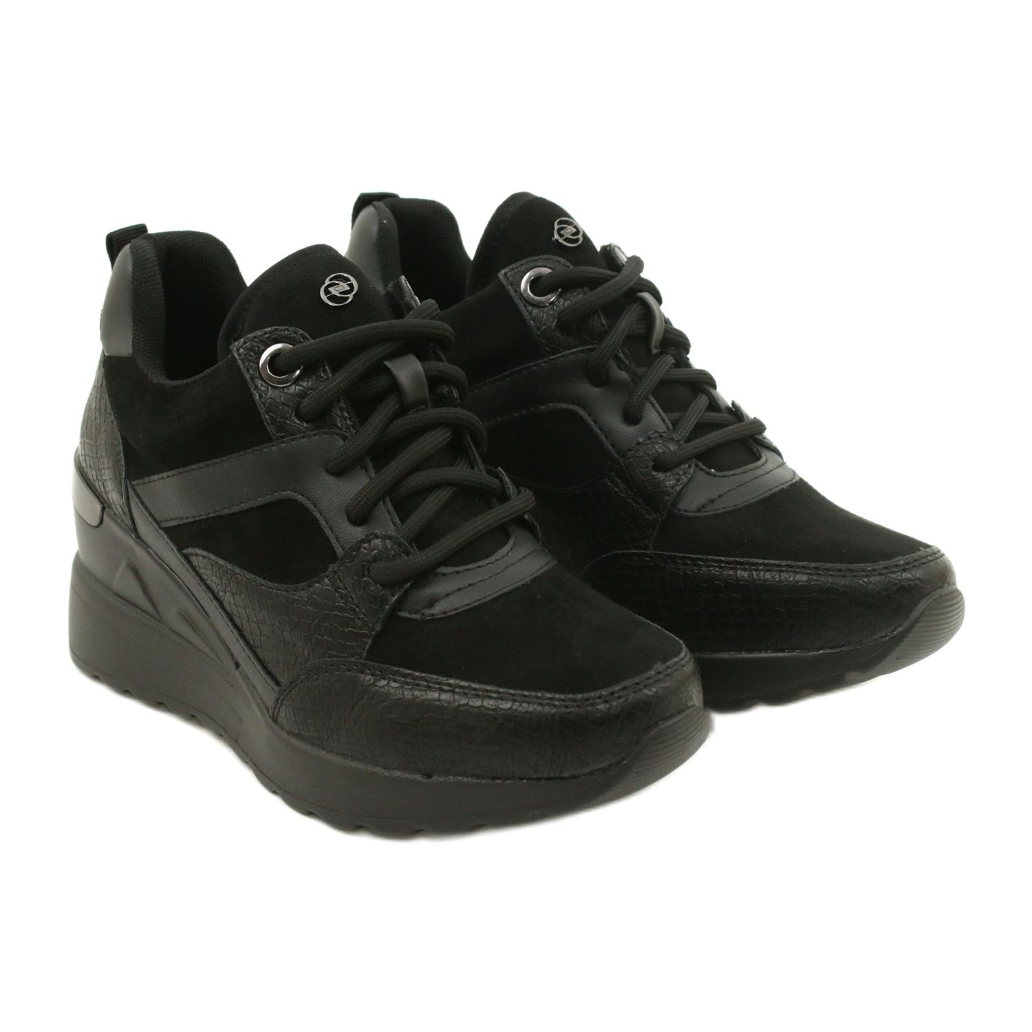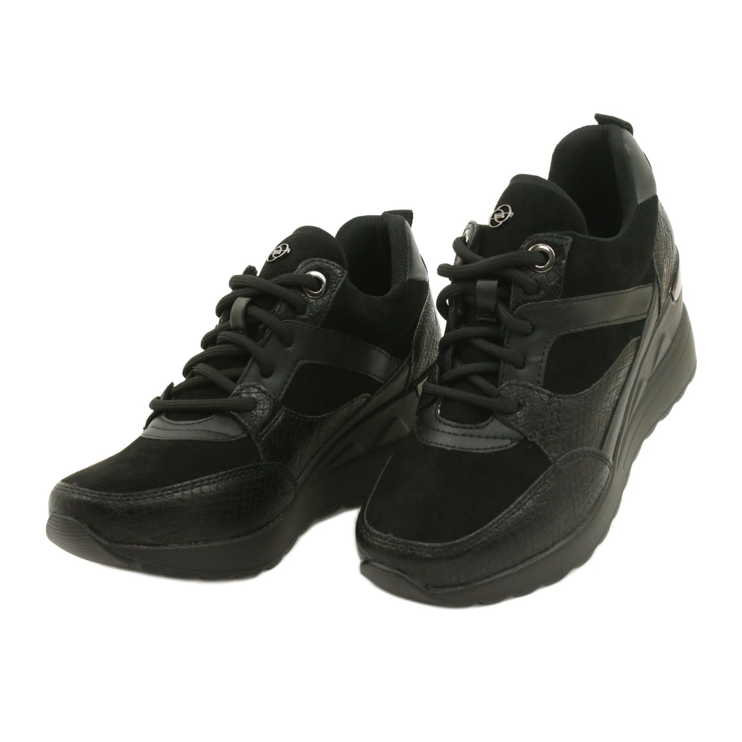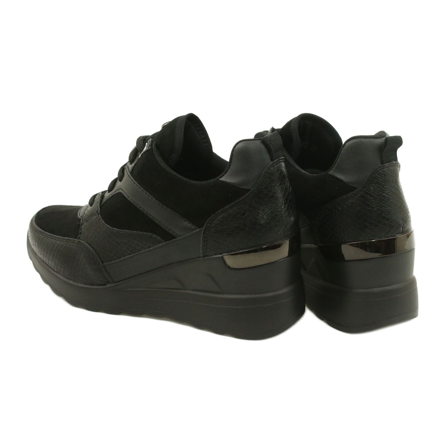 Graças à cunha de 5,5 cm, as suas pernas ficarão mais finas e você se sentirá mais confiante a cada passo. O tênis preto é equipado com palmilha em couro macio que garante o máximo conforto de uso durante todo o dia. Além disso, as aplicações metálicas conferem-lhes um carácter único, combinando perfeitamente com vários estilos.