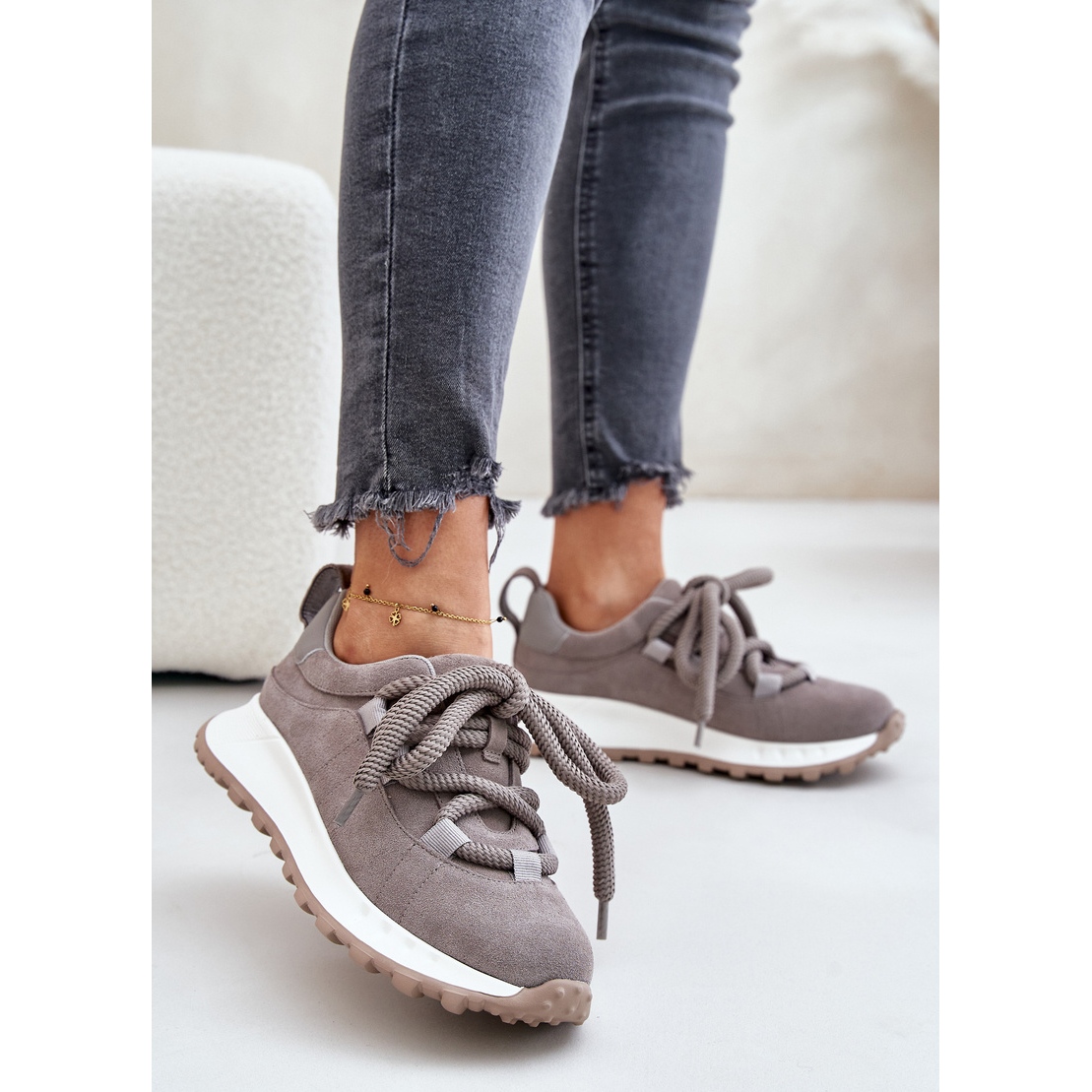 Detalhes: Tênis feminino de camurça com cadarço grosso Artiker 54C1465 cinza