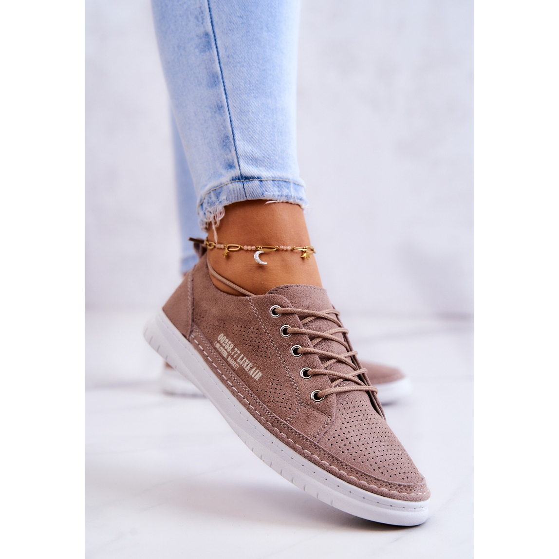 Detalhes: PE1 Tênis feminino de camurça marrom Cloesa