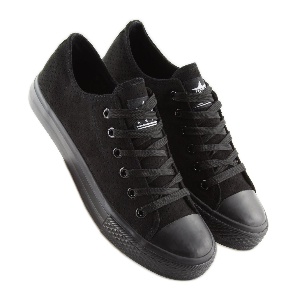 Inna marka Tênis feminino de camurça preta G-94 preto
