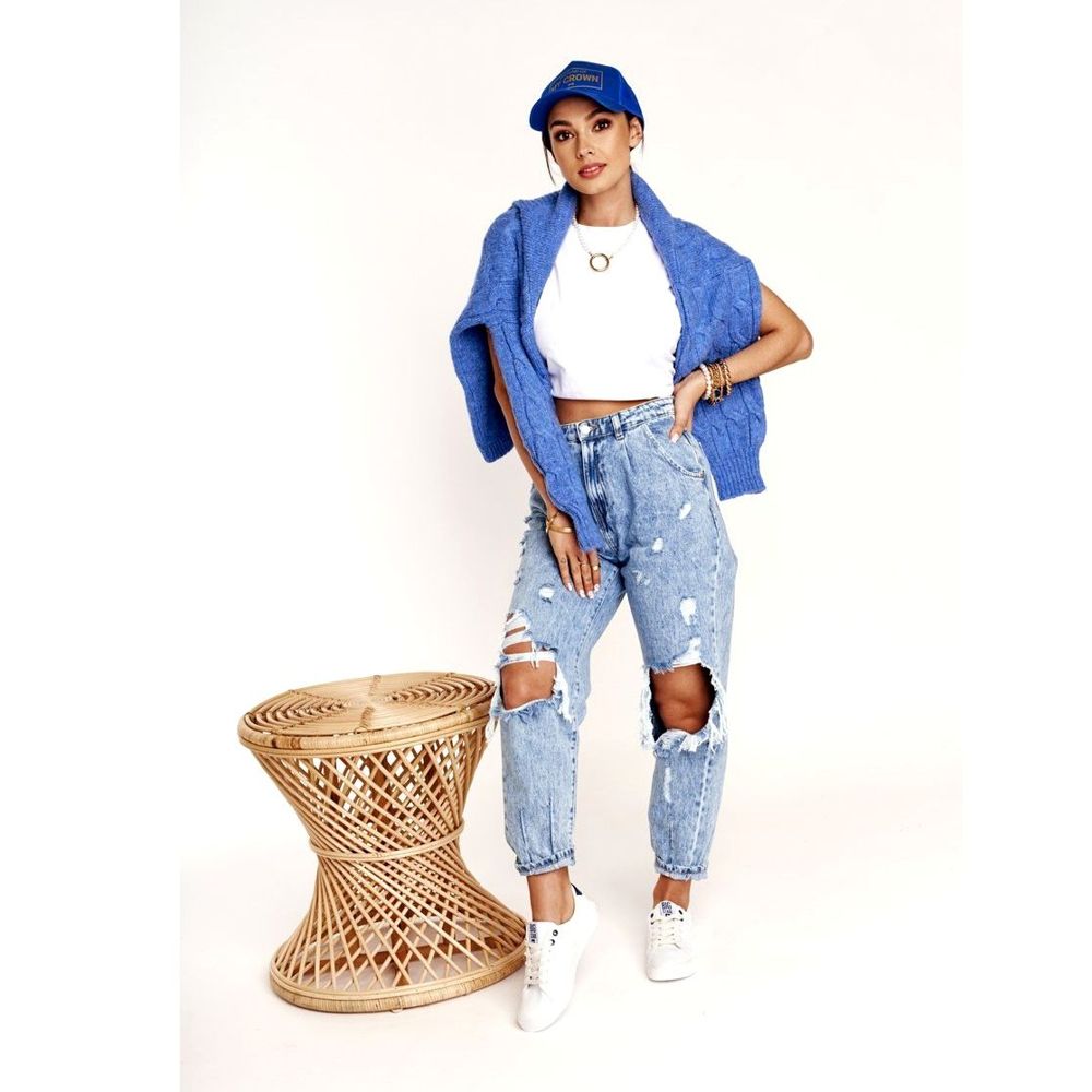 O perfil baixo e a sola branca com 2,5 cm de altura tornam o calçado leve e confortável, perfeito para qualquer ocasião. Graças às suas cores universais - branco com detalhes em azul marinho - cabem perfeitamente em muitos looks, tanto na primavera como no verão.