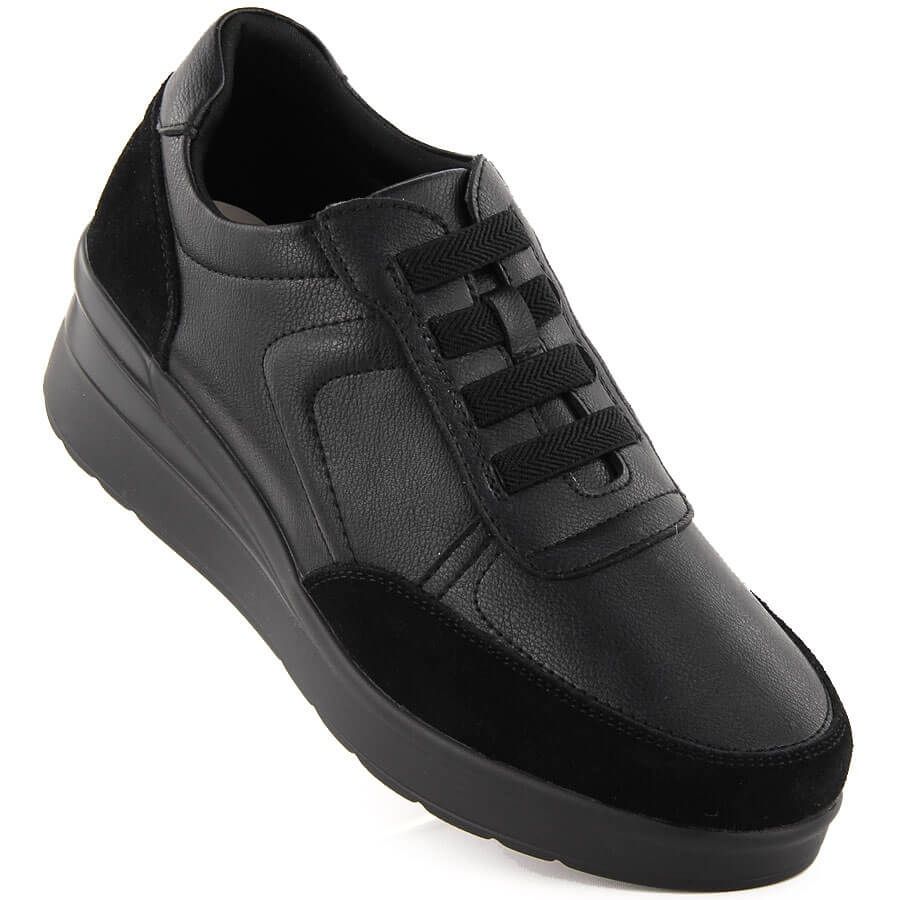 Aqui está uma proposta ideal para todos os amantes de conveniência e tênis de cunha de couro da Wood Women da renomada marca Sergio Leone, modelo PB236-S. Esses sapatos pretos são um sucesso absoluto da temporada, que funcionará nas estilizações todos os dias e esportivas.