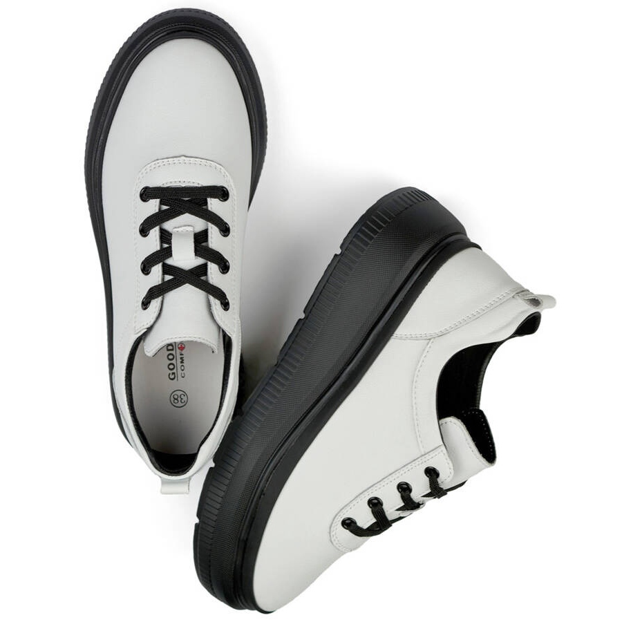 Goodin Goodin Tênis feminino de couro com sola plataforma preta, branco GD-XF-120A-W