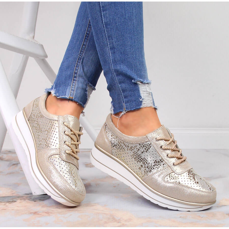 Detalhes: S.Barski Tênis feminino de couro dourado S. Barski