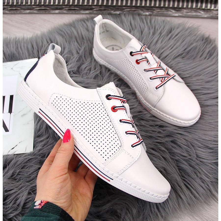 Estes ténis casuais numa linda cor branca são perfeitos para os dias de primavera, combinando com uma vasta gama de estilos - desde o dia a dia até combinações mais elegantes. O fecho de cadarço permite ajustar facilmente o calçado ao pé e a sola baixa de 2 cm garante estabilidade e conforto.
