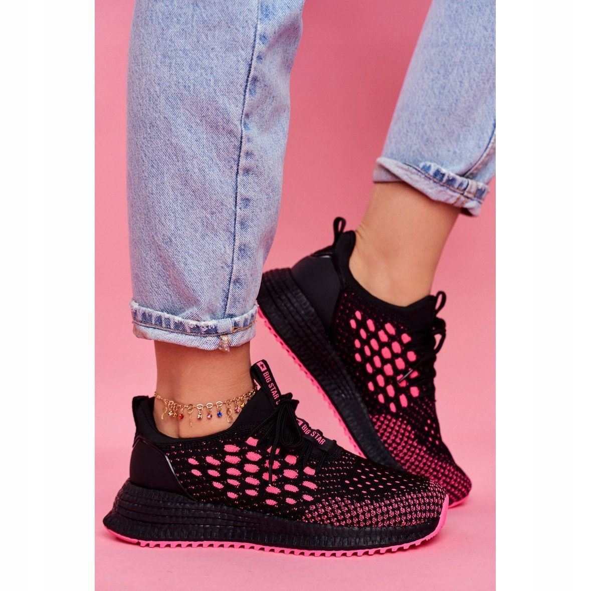 Detalhes: Tênis feminino esportivo Big Star preto fúcsia FF274964 rosa