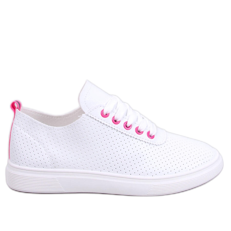 Gelman White/Fuksja Sneakers - Branco com detalhes em rosa que imediatamente chamam a atenção. Sapatos baixos e baixos com um nariz redondo combinam um estilo e conforto casuais - perfeitos todos os dias, uma caminhada pela cidade ou encontrando com amigos.