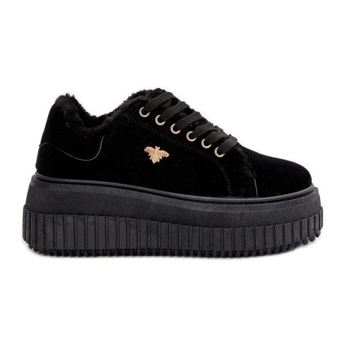 Os tênis femininos isolados em uma sola enorme com os detalhes dourados do lhofro preto é a escolha perfeita para mulheres que valorizam o estilo e o conforto. Esses sapatos de forma elegante são distinguidos por uma sola enorme com uma altura de 6 cm, o que não apenas adiciona alguns centímetros de altura, mas também absorve perfeitamente os degraus, o que os torna uma ótima solução para dias mais frios.