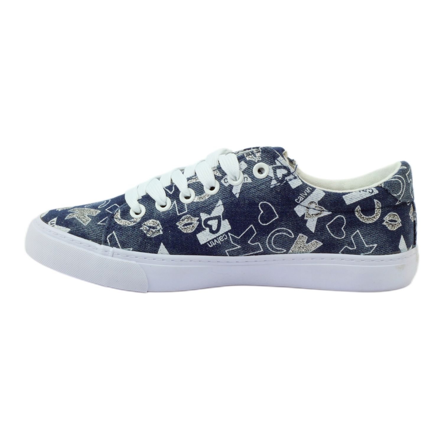 Detalhes: Tênis feminino jeans com glitter American clublh18 azul marinho
