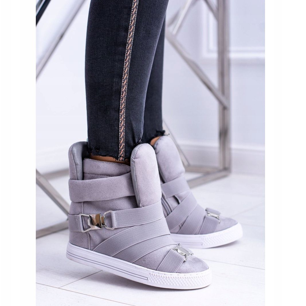 Descubra conforto e estilo com os tênis Lu Boo femininos com elásticos na elegante cor cinza. Estes calçados esportivos exclusivos são a escolha perfeita para mulheres que desejam combinar conforto com um visual moderno. Graças à cunha oculta, o tênis não só enfatiza a figura feminina, mas também alonga opticamente as pernas, o que certamente chamará a atenção.