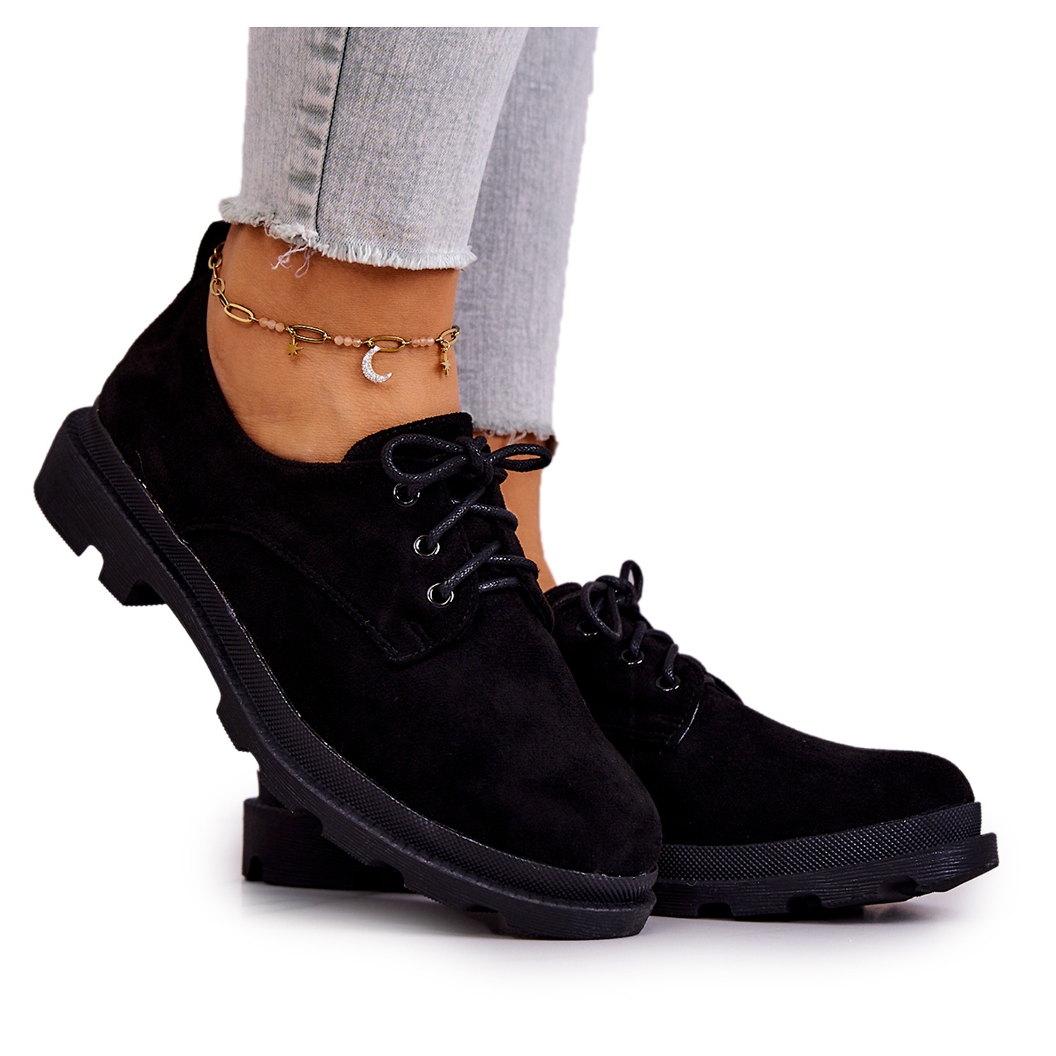 Detalhes: S.Barski Tênis feminino Oxfords de camurça clássico preto Colton