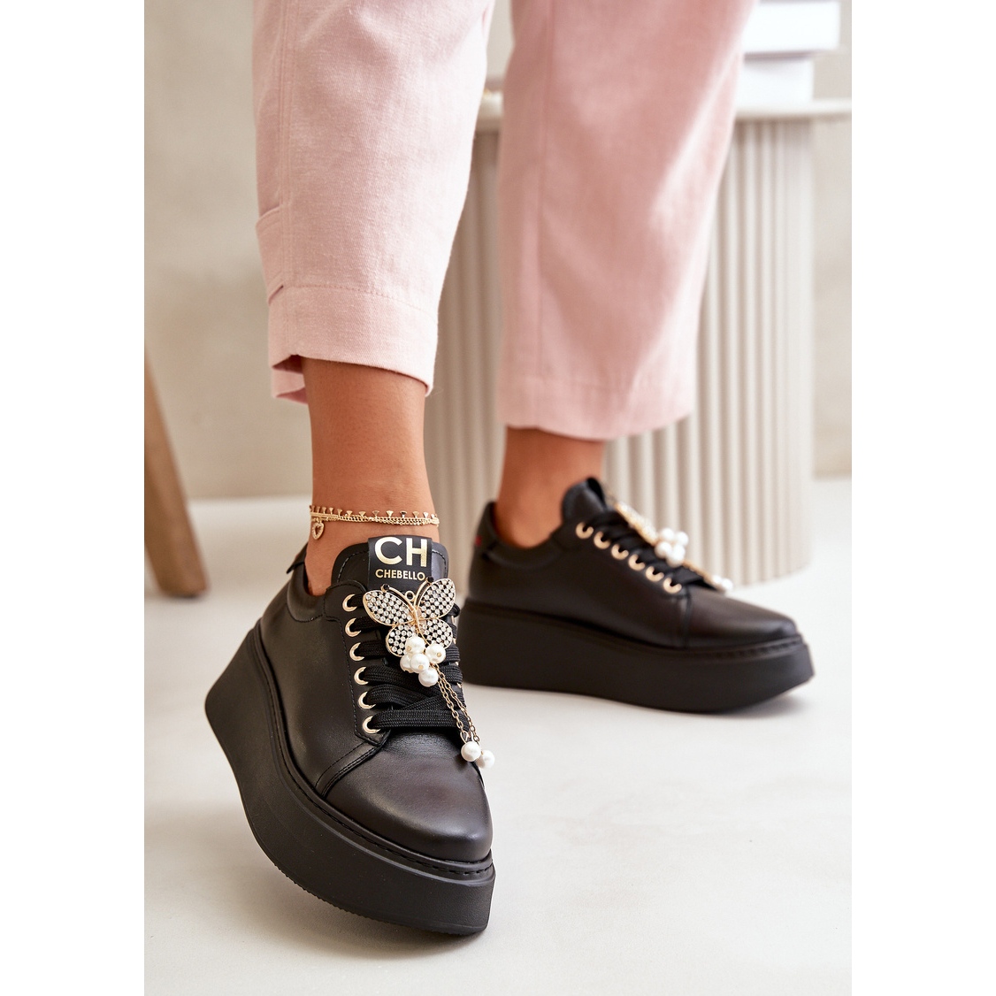 Descubra os tênis de couro femininos exclusivos na plataforma com uma borboleta de Chebello, Modelo 4585 em uma cor preta clássica. Esses sapatos elegantes combinam conforto e elegância, o que os torna a escolha perfeita para as estilizações diárias.