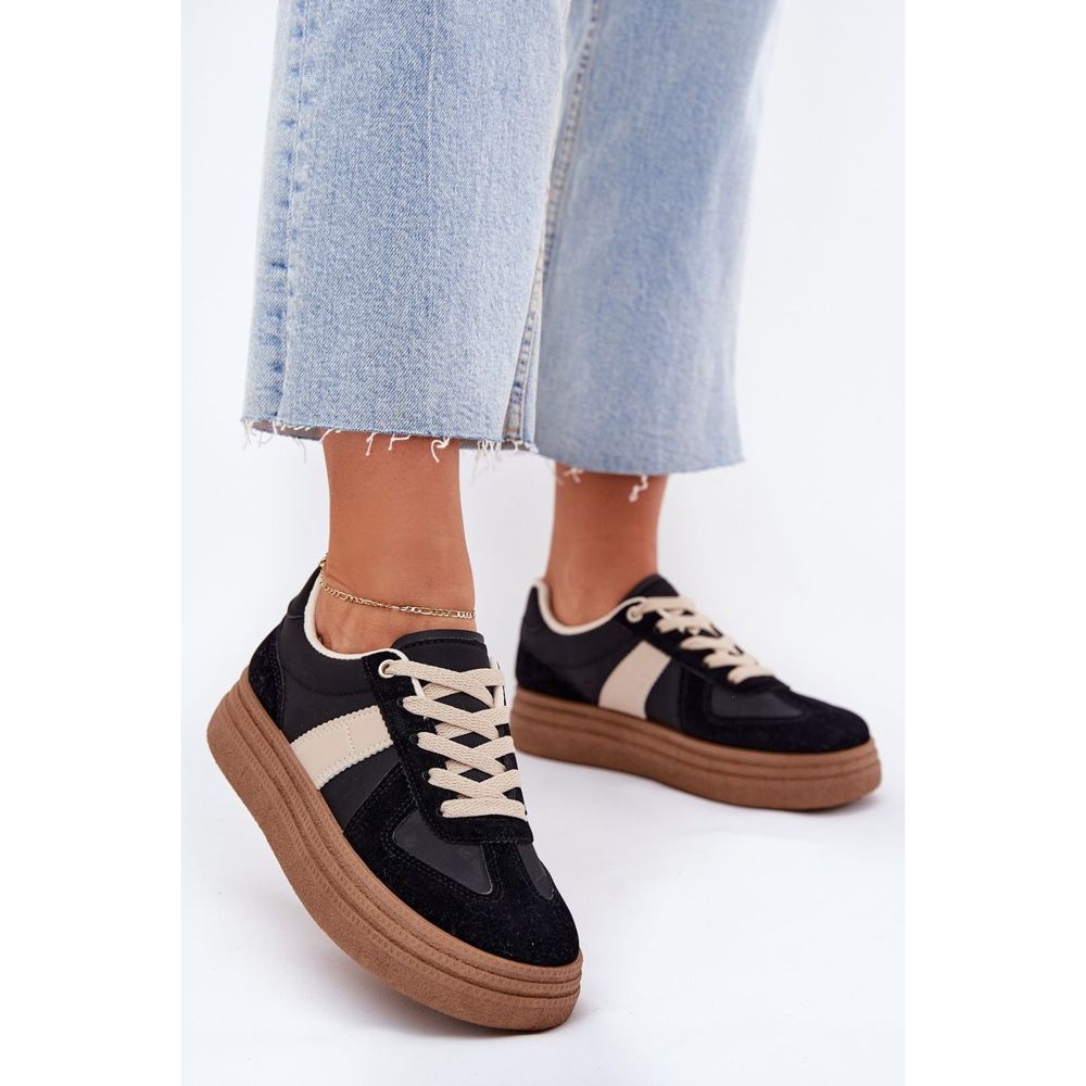 Convidamos você a descobrir elegantes e, ao mesmo tempo, tênis femininos confortáveis na plataforma em uma cor preta clássica. Esses sapatos elegantes, feitos de couro ecológico de alta qualidade, são uma ótima opção todos os dias, combinando design moderno com soluções práticas.