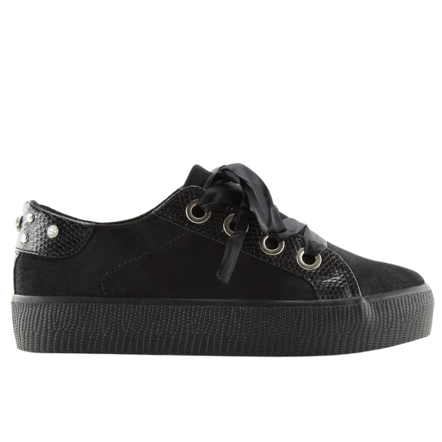 Descubra um estilo único com os tênis femininos pretos BS096 BAS-1 Black, que combinam elegância e conforto. Estes lindos tênis foram cuidadosamente confeccionados em camurça ecológica brilhante, o que os torna não só na moda, mas também ecologicamente corretos. O seu corte clássico foi enriquecido com as últimas tendências, incluindo fitas em vez das tradicionais rendas, que acrescentam originalidade e brilho subtil.