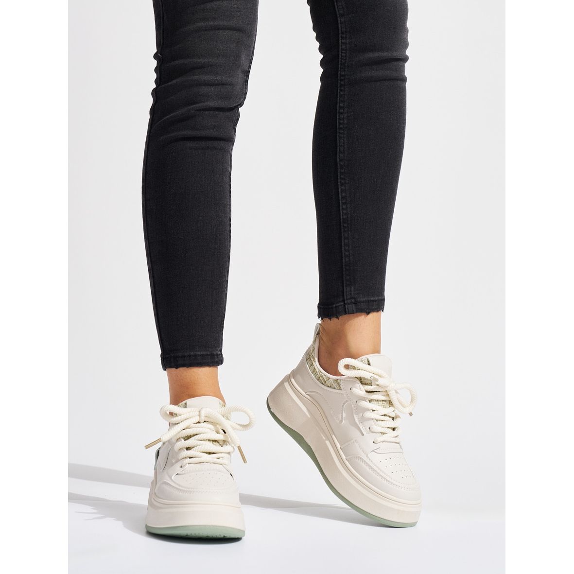 Os tênis Shelvt se diferenciam pelo design moderno e funcionalidade. Eles têm um salto macio embutido que garante estabilidade e conforto de uso, e a ponta redonda adiciona um caráter sutil. Graças ao laço, você pode ajustá-los perfeitamente aos pés, o que aumenta o conforto de uso.