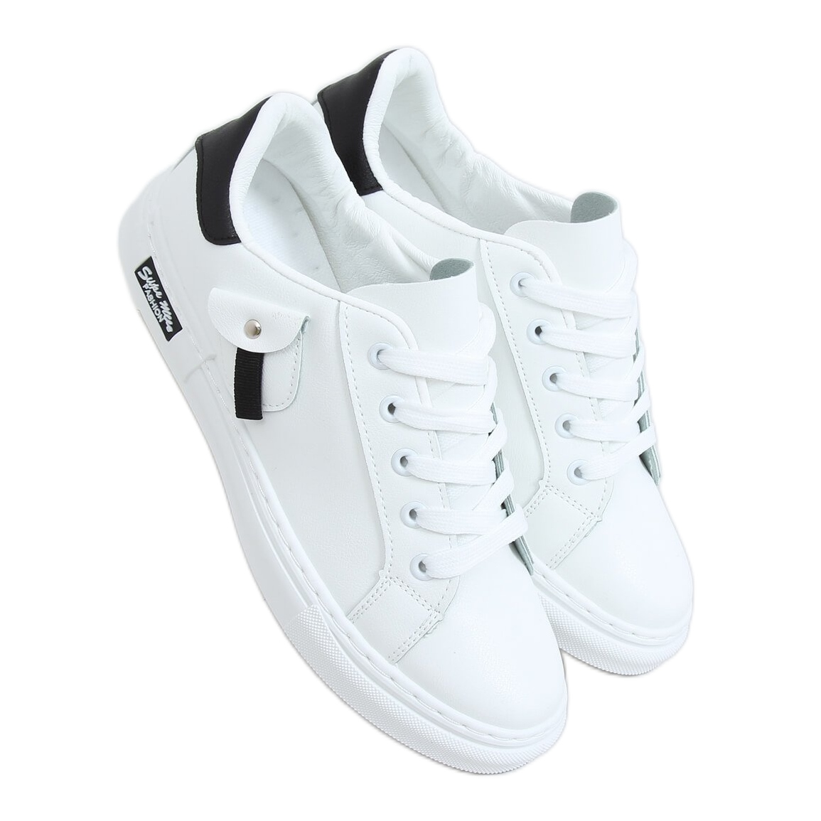 Estes tênis com atacadores são um modelo clássico que se adapta perfeitamente ao chique urbano. Brancos, decorados com elementos pretos contrastantes e um detalhe interessante - uma imitação de bolso - certamente vão chamar a atenção e dar personalidade ao seu estilo.