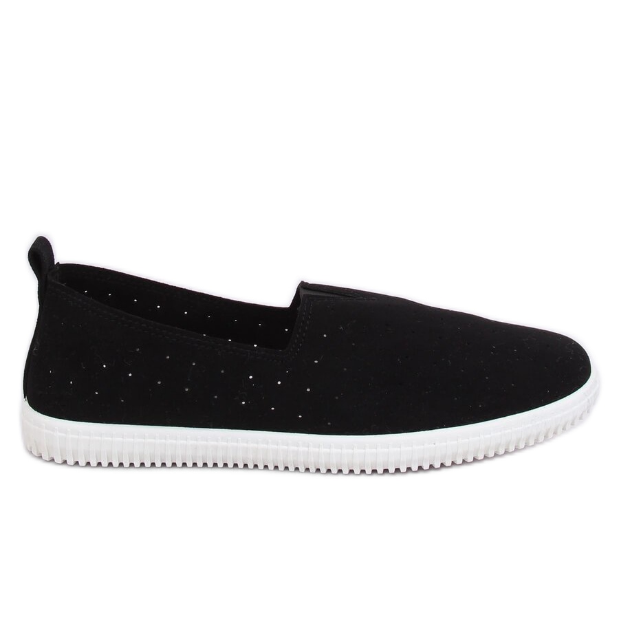 Este modelo caracteriza-se por um salto baixo de 2,0 cm, o que o torna perfeito para o uso diário. Feito em camurça ecológica com textura perfurada, o tênis tem um visual extremamente estiloso e combina com vários estilos casuais. A cor preta suave os torna um complemento perfeito para qualquer guarda-roupa de verão.