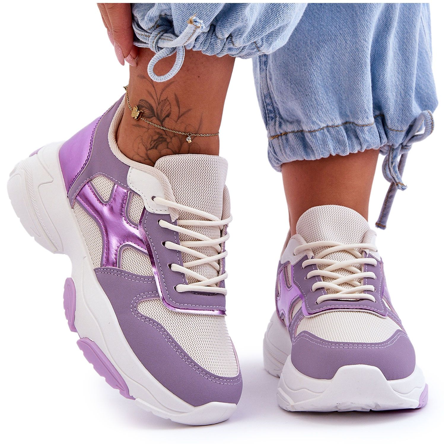 Detalhes: PS1 Tênis feminino roxo Cortes com cadarço