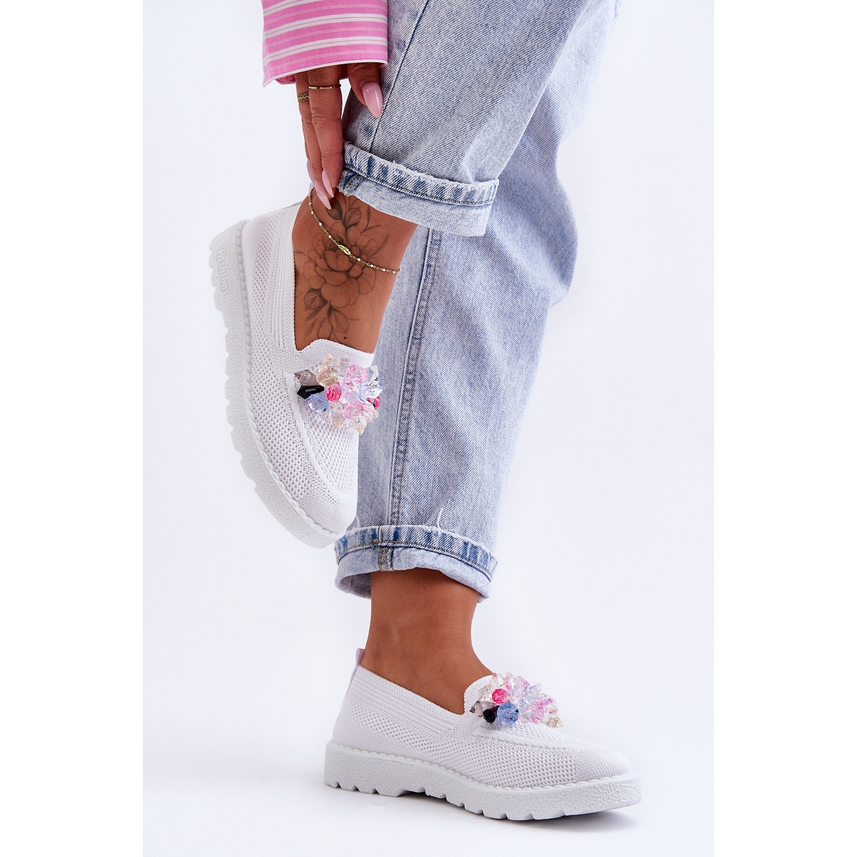 Confeccionados em material têxtil de alta qualidade, os tênis oferecem excelente ventilação, o que os torna perfeitos para os dias de primavera e verão, mas também funcionam bem no outono. A frente dos sapatos é decorada com atraentes strass multicoloridos, que lhes conferem um caráter e brilho únicos.
