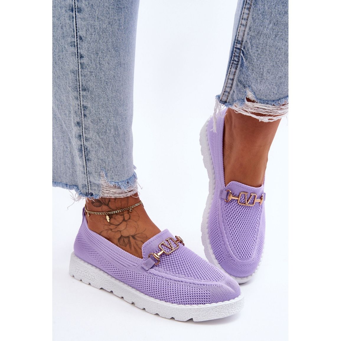 Detalhes: PM1 Tênis feminino sem cadarço com enfeites roxo Alena