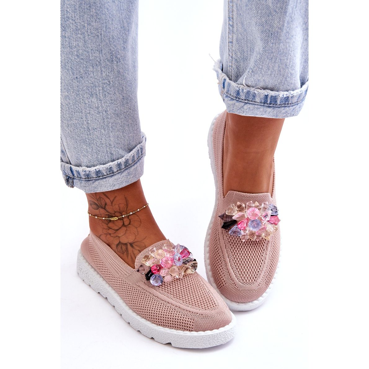 Tênis elegantes e confortáveis que adicionarão caráter feminino a qualquer estilo. Feito de material têxtil de alta qualidade, decorado com pedras coloridas (zircões) na frente. A estrutura inserida garante conforto e velocidade de colocar, e a palmilha de espuma se importa com a suavidade ao caminhar. Situado em uma plataforma de 3 cm de altura - eles levantarão sutilmente a figura, mantendo o conforto de um salto plano.