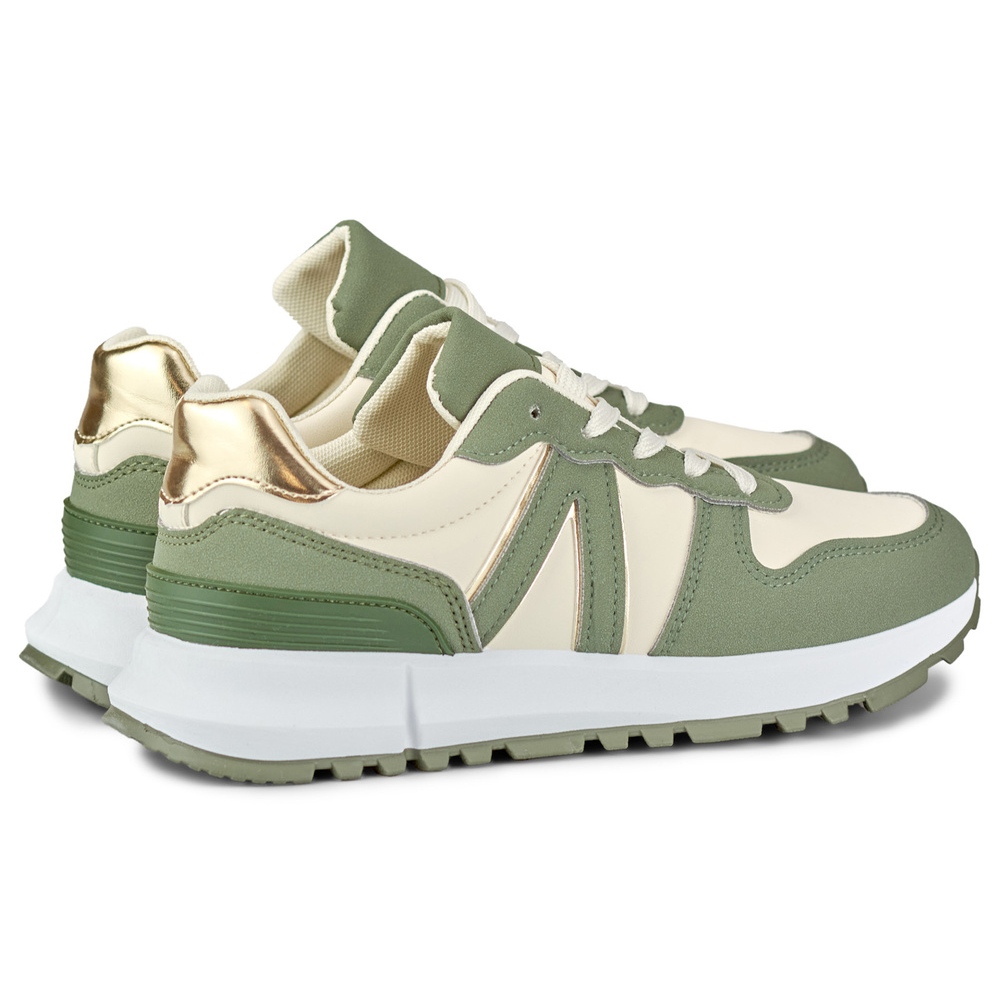 Detalhes: Tênis feminino verde e bege