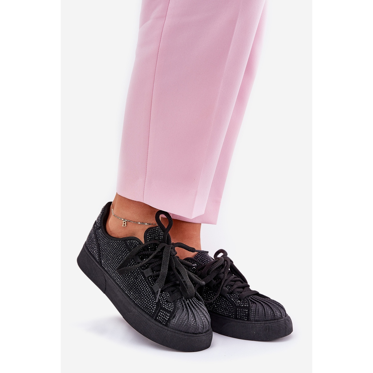 Detalhes: Tênis femininos com decoração na plataforma preta preto