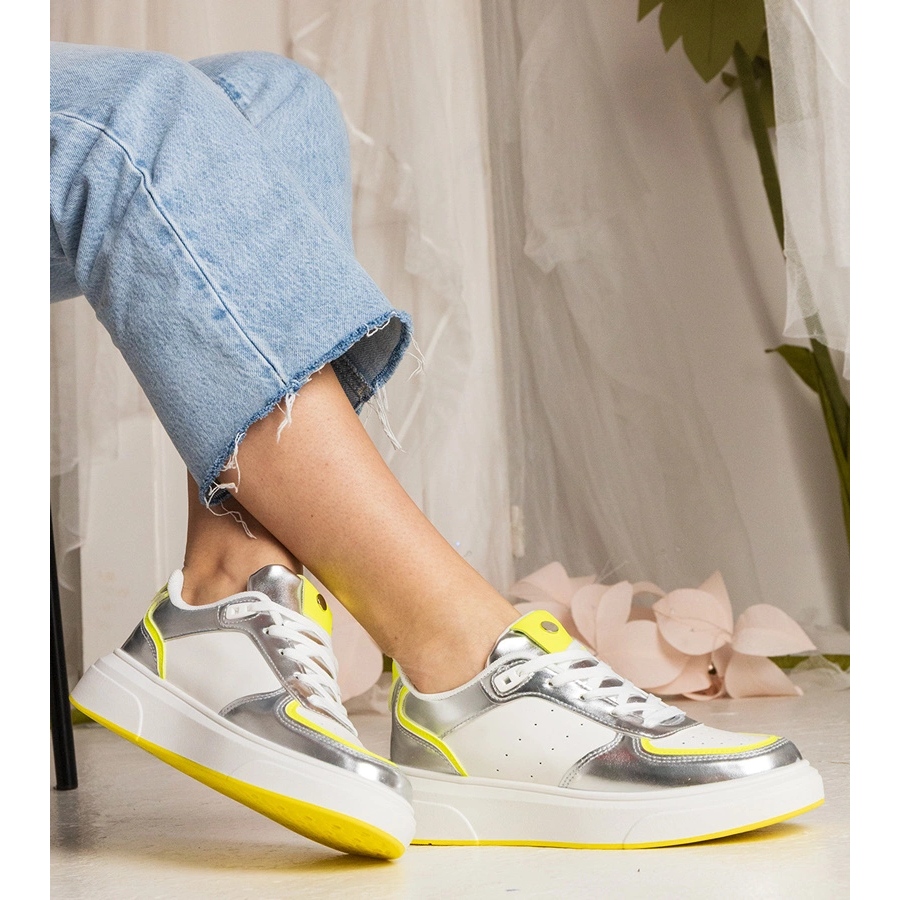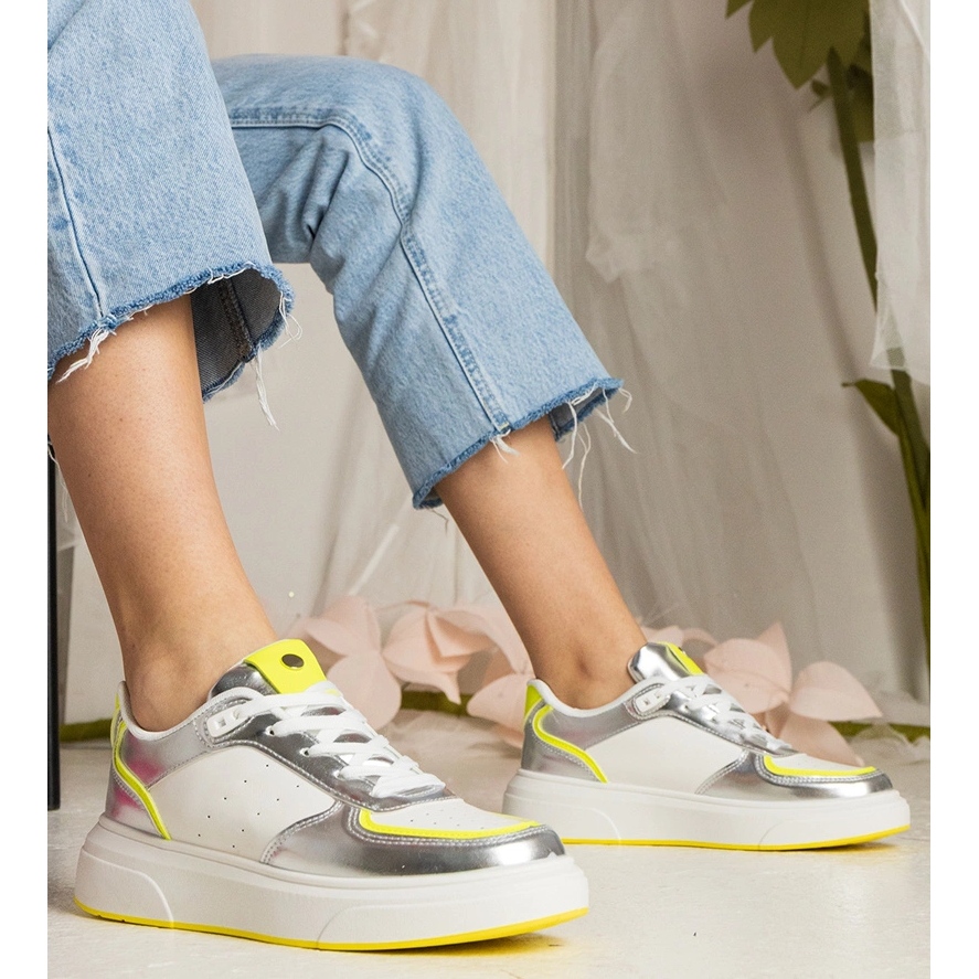 Escolha tênis de prata com sotaque neon e se destaque em todas as circunstâncias! Esta é uma ótima opção para mulheres que valorizam uma combinação de estilo e conforto. Não hesite no Modelo 8-87 e enfatize seu estilo único hoje!