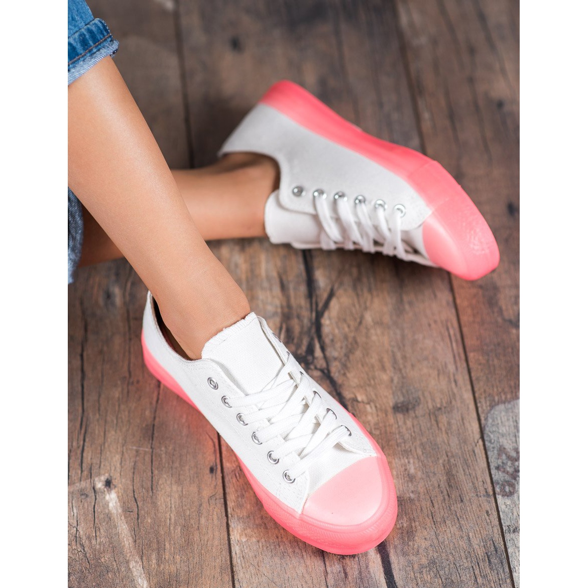 Detalhes: Jumex Tênis femininos elegantes branco rosa