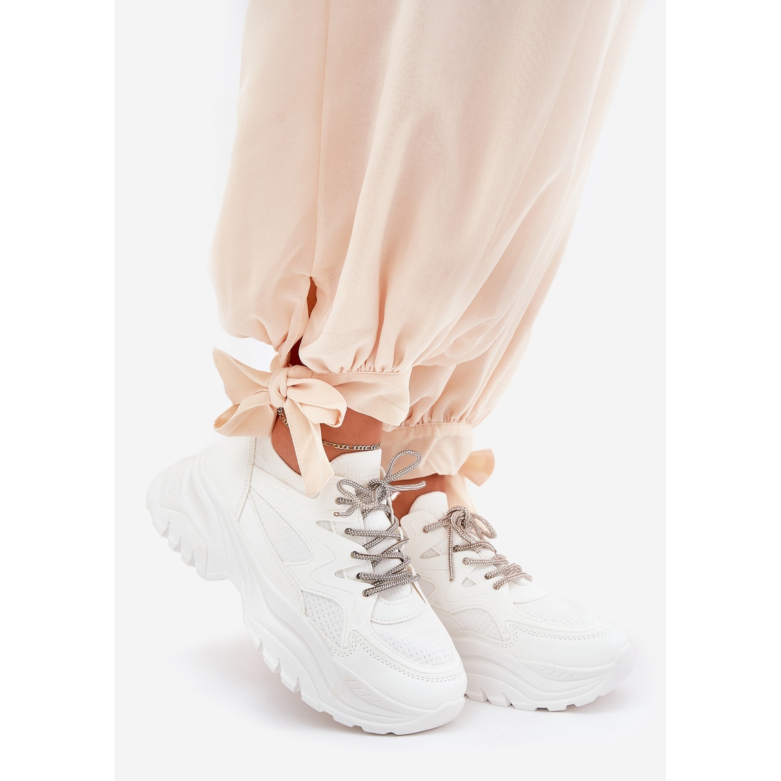 Os tênis femininos na plataforma com laço branco decorativo são uma ótima proposta para mulheres que desejam combinar estilo elegante com conforto todos os dias. Esses sapatos de deslizamento são distinguidos por uma enorme sola de 4 cm de altura, o que não apenas levanta a figura, mas também garante estabilidade e conforto ao caminhar.