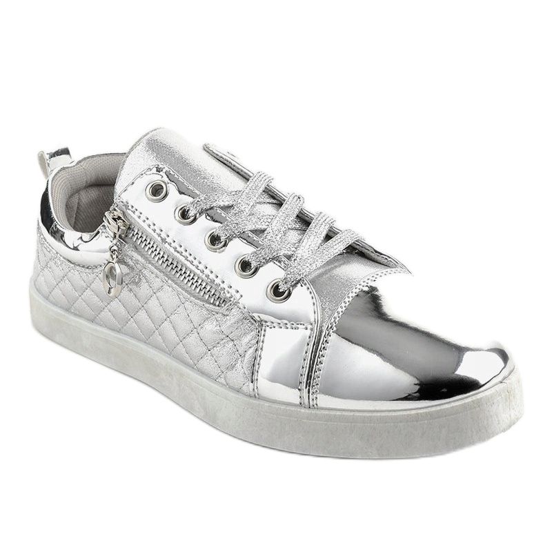 Detalhes: Tênis femininos prata da moda R19-3 cinza