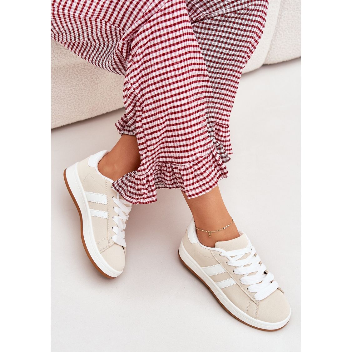 Descubra a combinação perfeita de estilo e conveniência com os tênis de sapatos esportivos femininos com couro ecológico em um belo tom de bege. Esses sapatos clássicos de renda são projetados para as necessidades das mulheres, oferecendo um ajuste perfeito ao pé graças ao ajuste com a ajuda de atacadores.