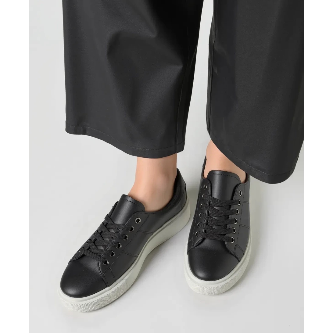 Tênis femininos Segunda -feira All Black é a escolha perfeita para as mulheres que procuram elegantes e, ao mesmo tempo, calçados confortáveis todos os dias. A cor preta clássica combinada com uma sola branca moderna e contrastante cria um estilo minimalista, mas expressivo, que combina perfeitamente com várias roupas.